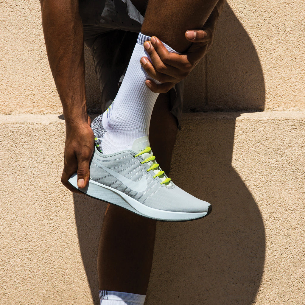 Never stop your race, game or workout for untied laces.